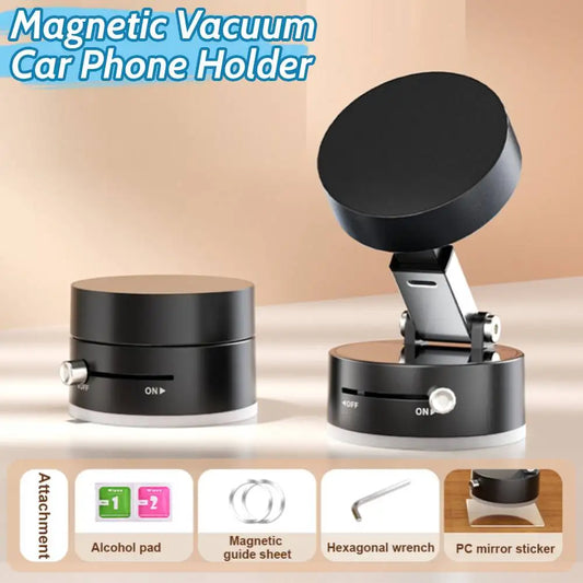 Magnetic Vacuum Car Phone Holder – Foldable & Secure Suction Cup Stand